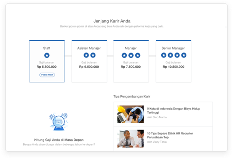 Salary Benchmark adalah fitur yang membandingkan gaji Anda dengan yang berlaku di pasaran, berdasarkan level, lama bekerja, fungsi pekerjaan, dan industri Anda.