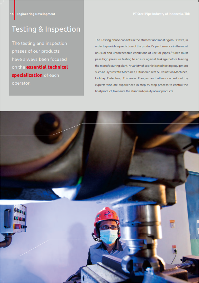 PT Steel Pipe Industry of Indonesia, Tbk. (SPINDO) is a steel pipe manufacturer which has the largest production capacity in Indonesia and is vastly experienced in producing a wide range of