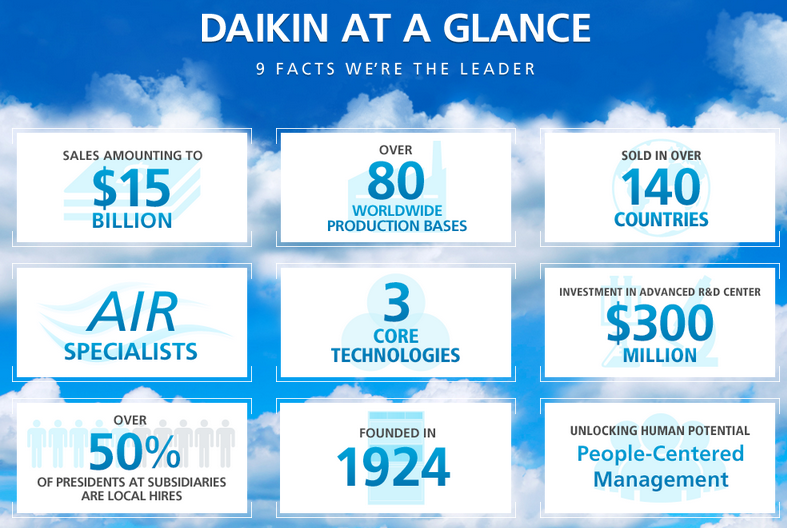 Daikin offers an environment and opportunities nurturing growth the people work with enthusiasm and purpose.